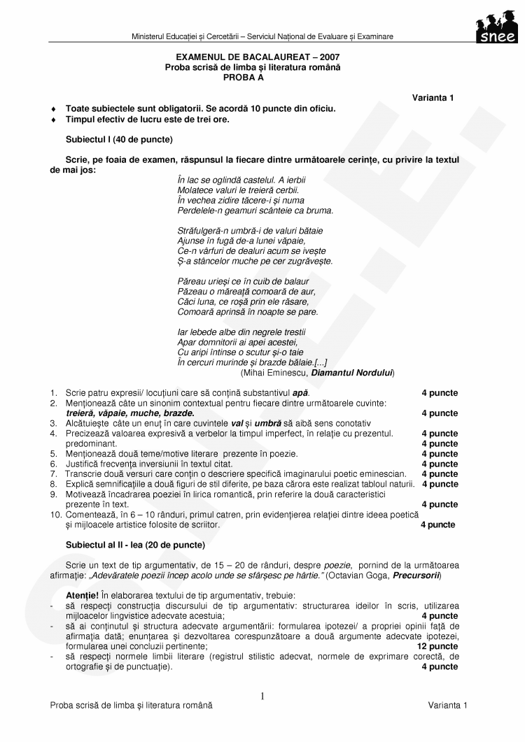 3 puncte; abilitati de analiza si de argumentare ~ 3 puncte;