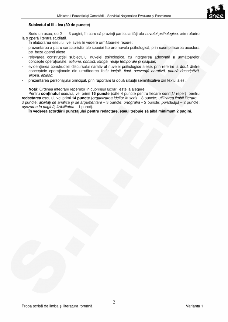 redactarea eseului, vei primi 14 puncte (organizarea ideilor