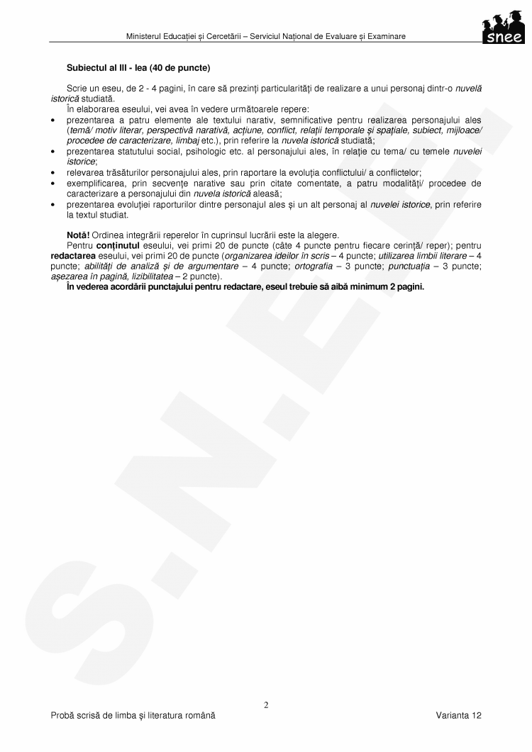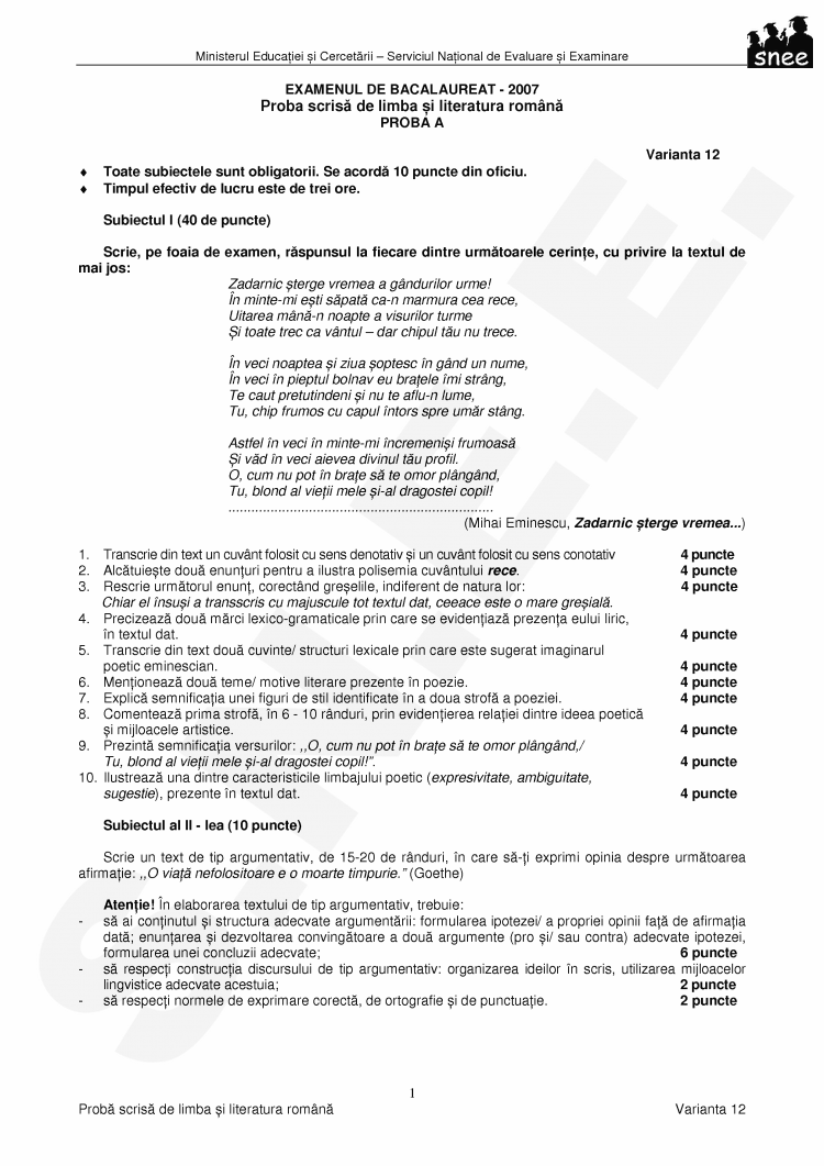 puncte; abilitati de analiza si de argumentare - 4 puncte;