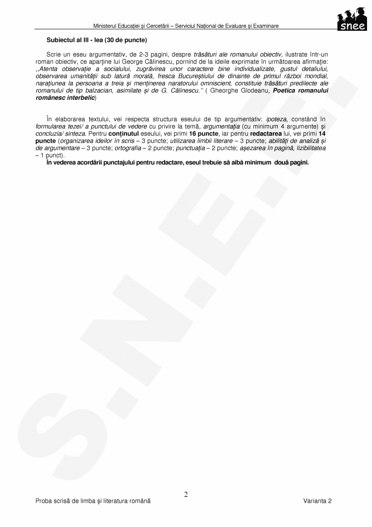 de argumentare - 3 puncte; ortografia - 2 puncte; punctuatia