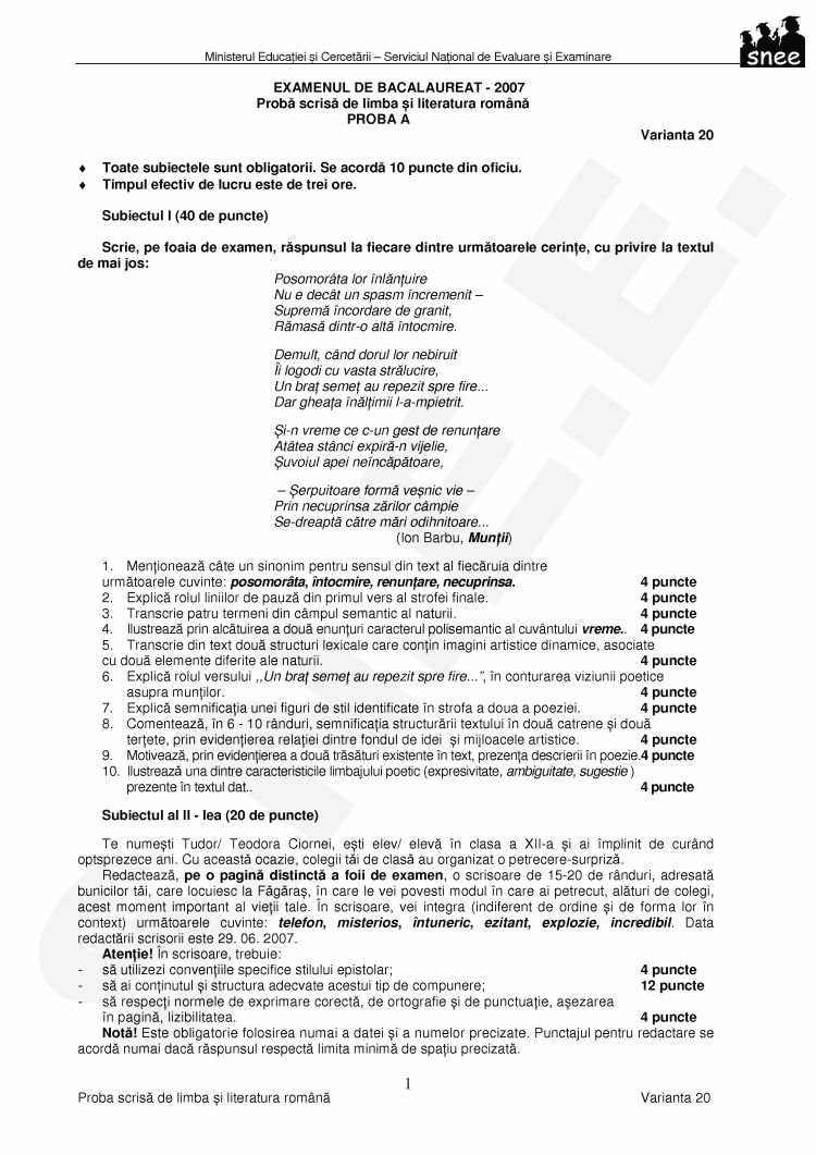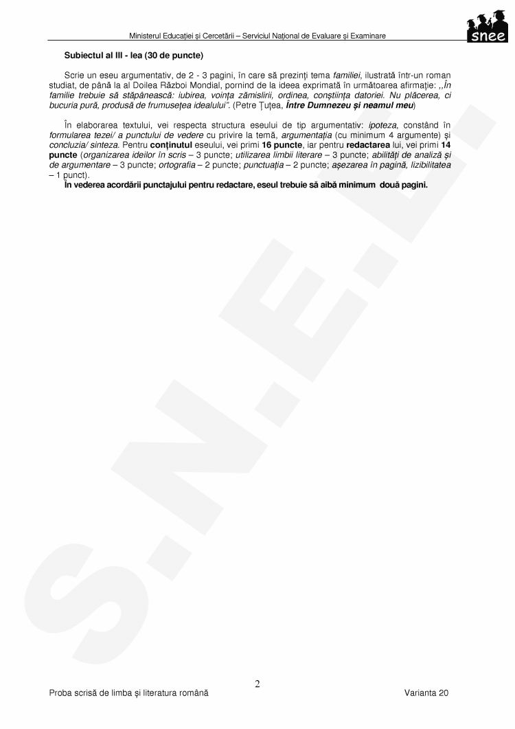 de argumentare - 3 puncte; ortografia - 2 puncte; punctuatia