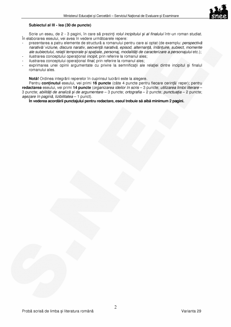 3 puncte; abilitati de analiza si de argumentare - 3 puncte;