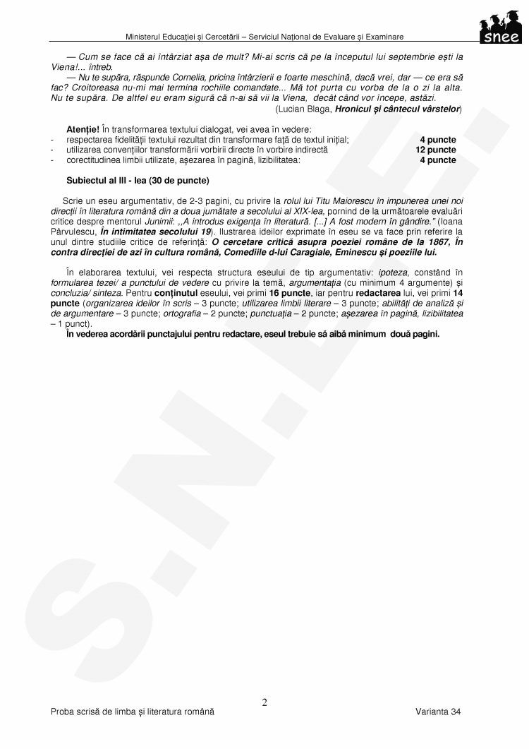 de argumentare - 3 puncte; ortografia - 2 puncte; punctuatia