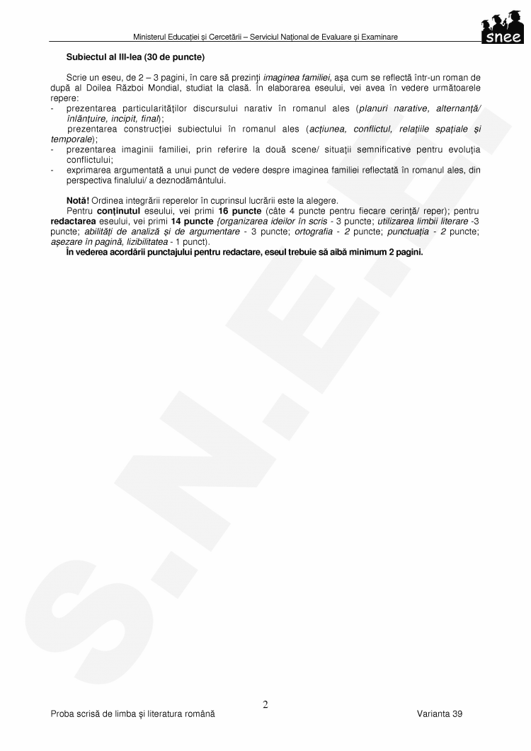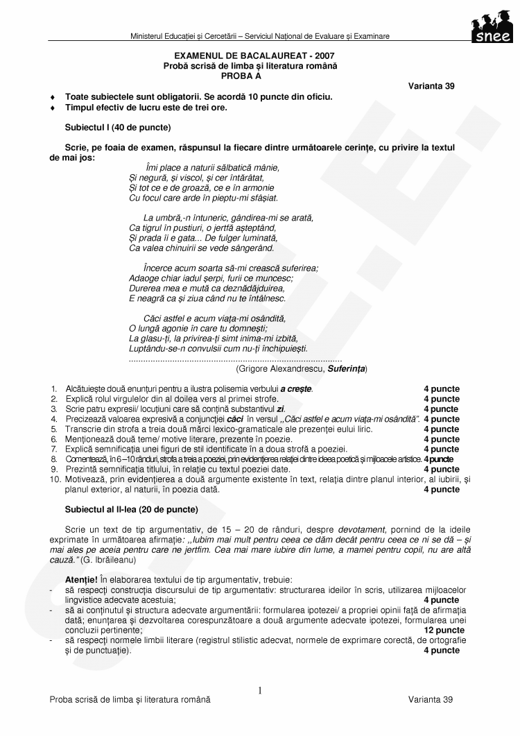 puncte; abilitati de analiza si de argumentare - 3 puncte;