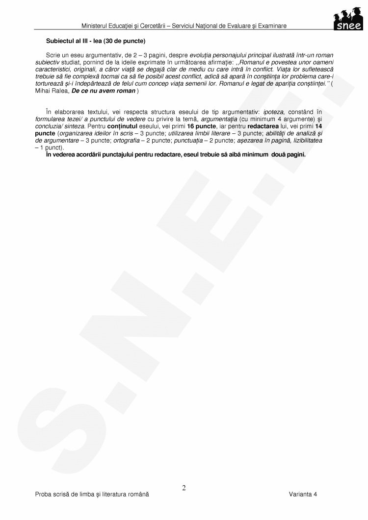 de argumentare - 3 puncte; ortografia - 2 puncte; punctuatia