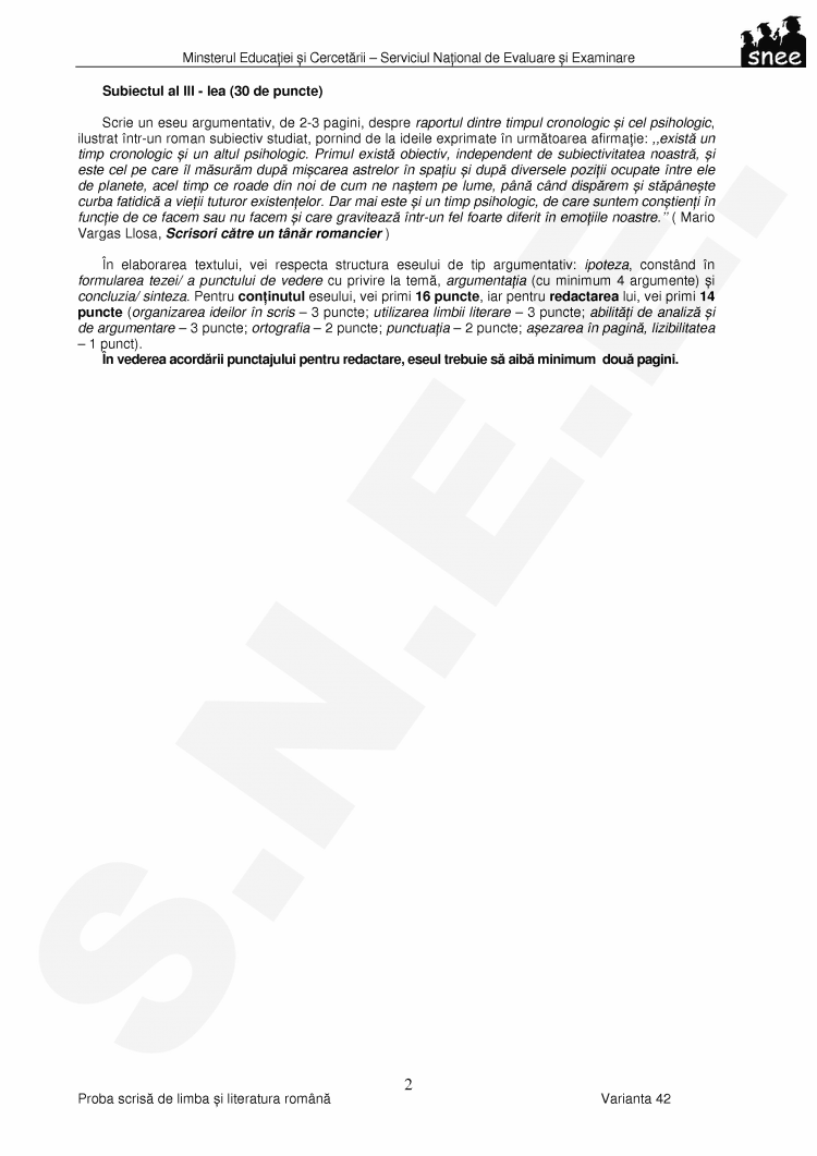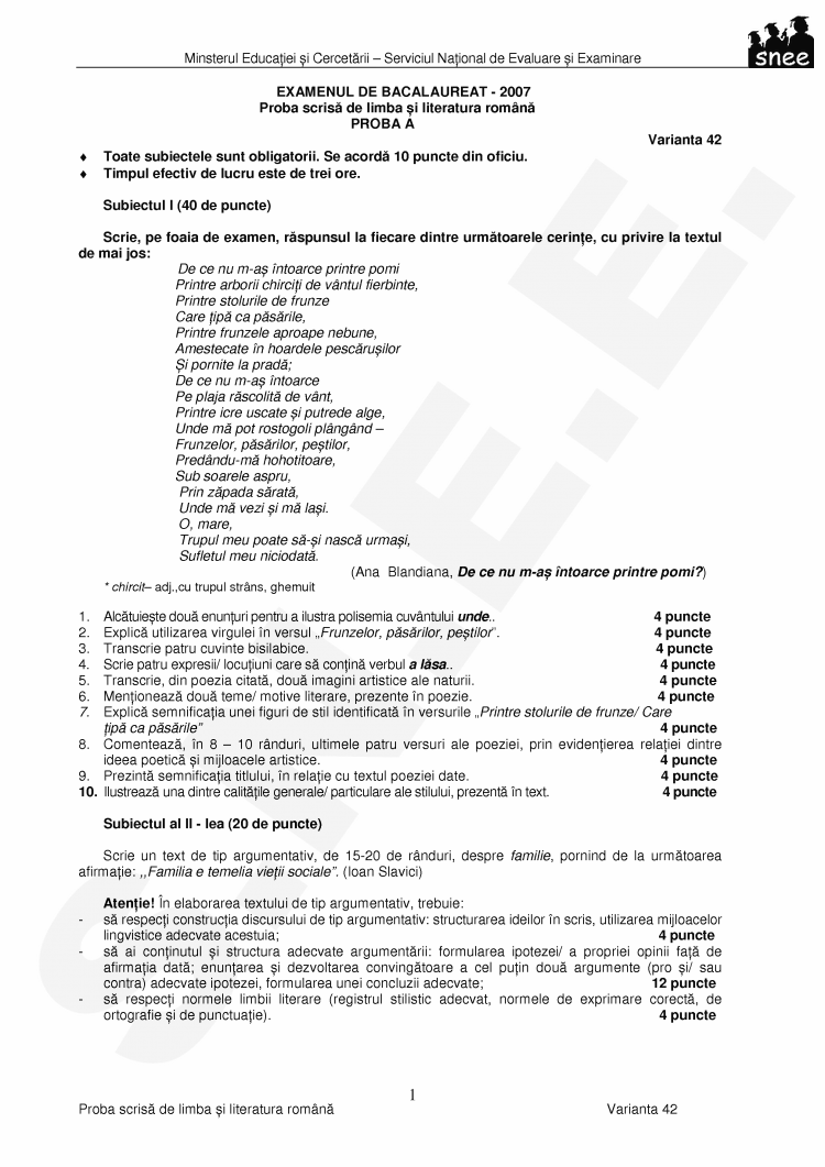 de argumentare - 3 puncte; ortografia - 2 puncte; punctuatia