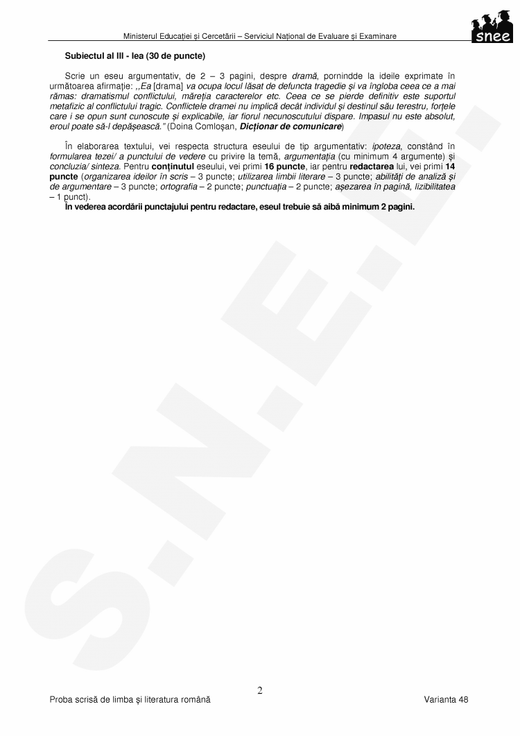 de argumentare - 3 puncte; ortografia - 2 puncte; punctuajia