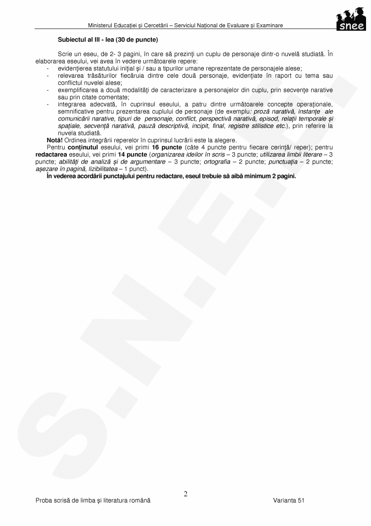 puncte; abilitati de analiza si de argumentare - 3 puncte;
