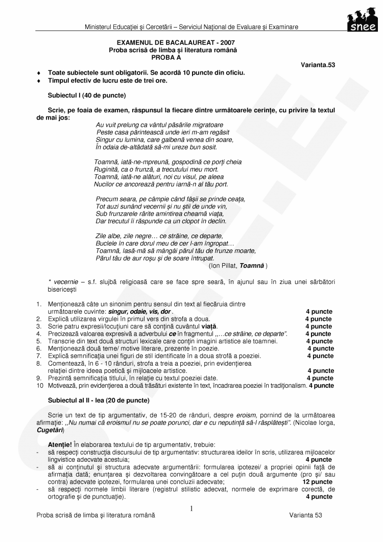 EXAMENUL DE BACALAUREAT - 2007