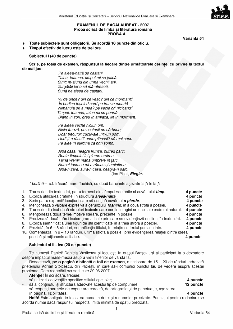 • Toate subiectele sunt obligatorii. Se acorda 10 puncte
