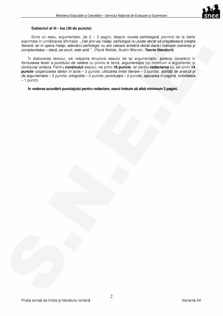 de argumentare - 3 puncte; ortografia - 2 puncte; punctuatia