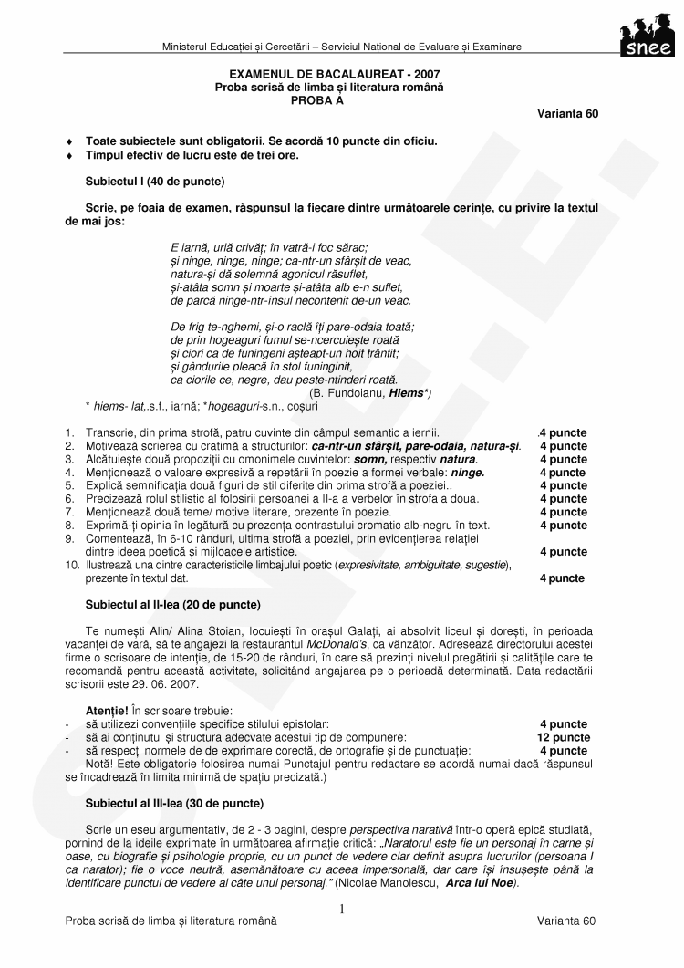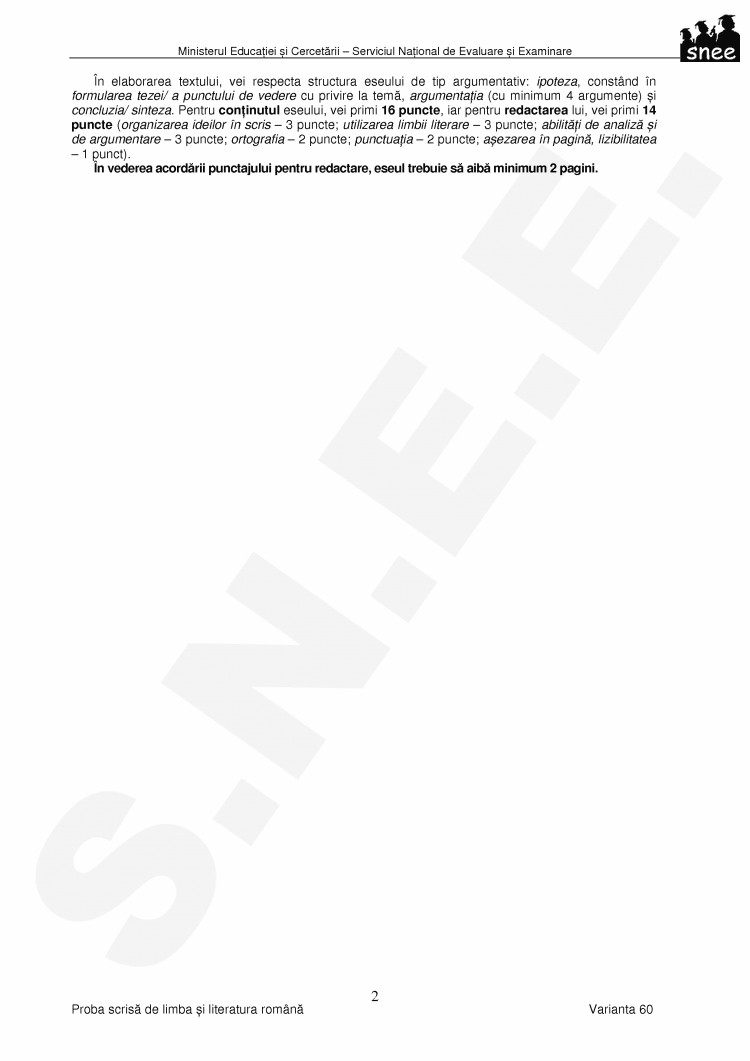 de argumentare - 3 puncte; ortografia - 2 puncte; punctuatia