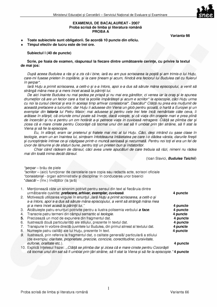 EXAMENUL DE BACALAUREAT - 2007