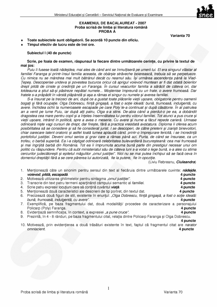 • Toate subiectele sunt obligatorii. Se acorda 10 puncte