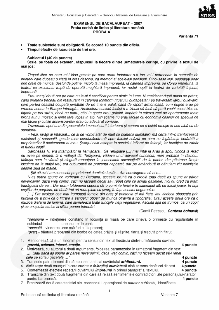 • Toate subiectele sunt obligatorii. Se acorda 10 puncte