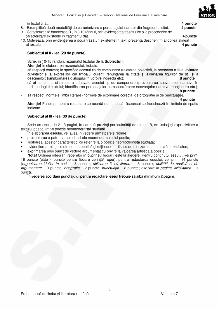 Atentie! Punctajul pentru redactare se acorda numai daca