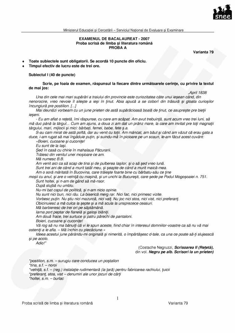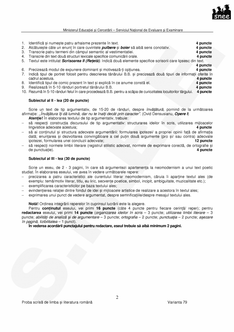 puncte; abilitati de analiza si de argumentare - 3 puncte;