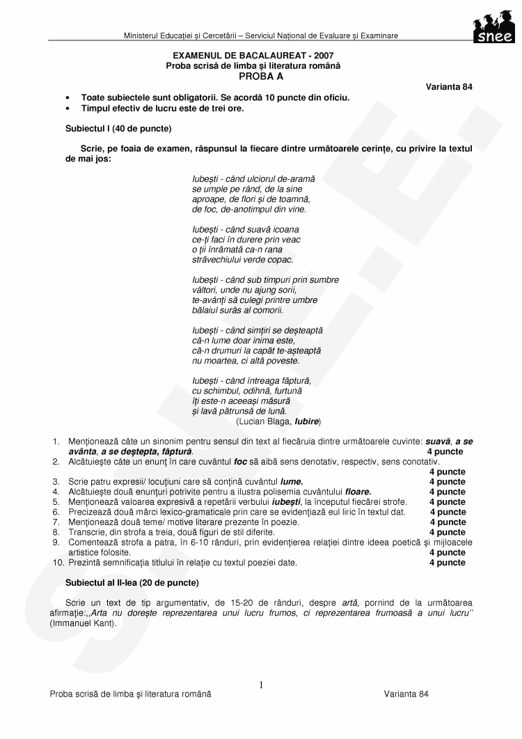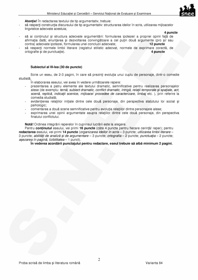 3 puncte; abilitati de analiza si de argumentare - 3 puncte;