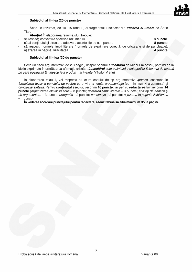 de argumentare - 3 puncte; ortografia - 2 puncte; punctuatia