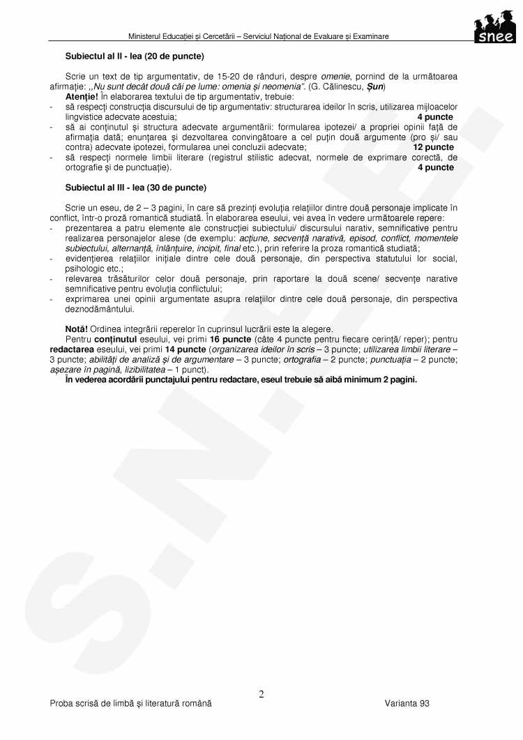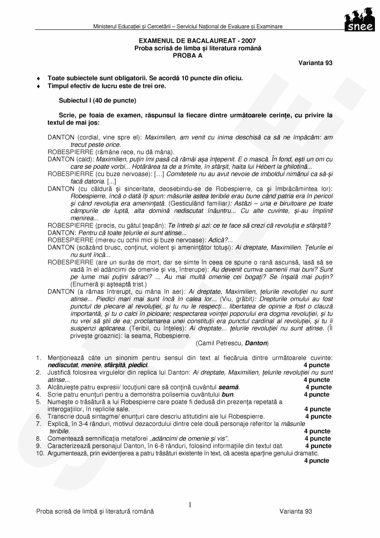 3 puncte; abilitati de analiza si de argumentare - 3 puncte;
