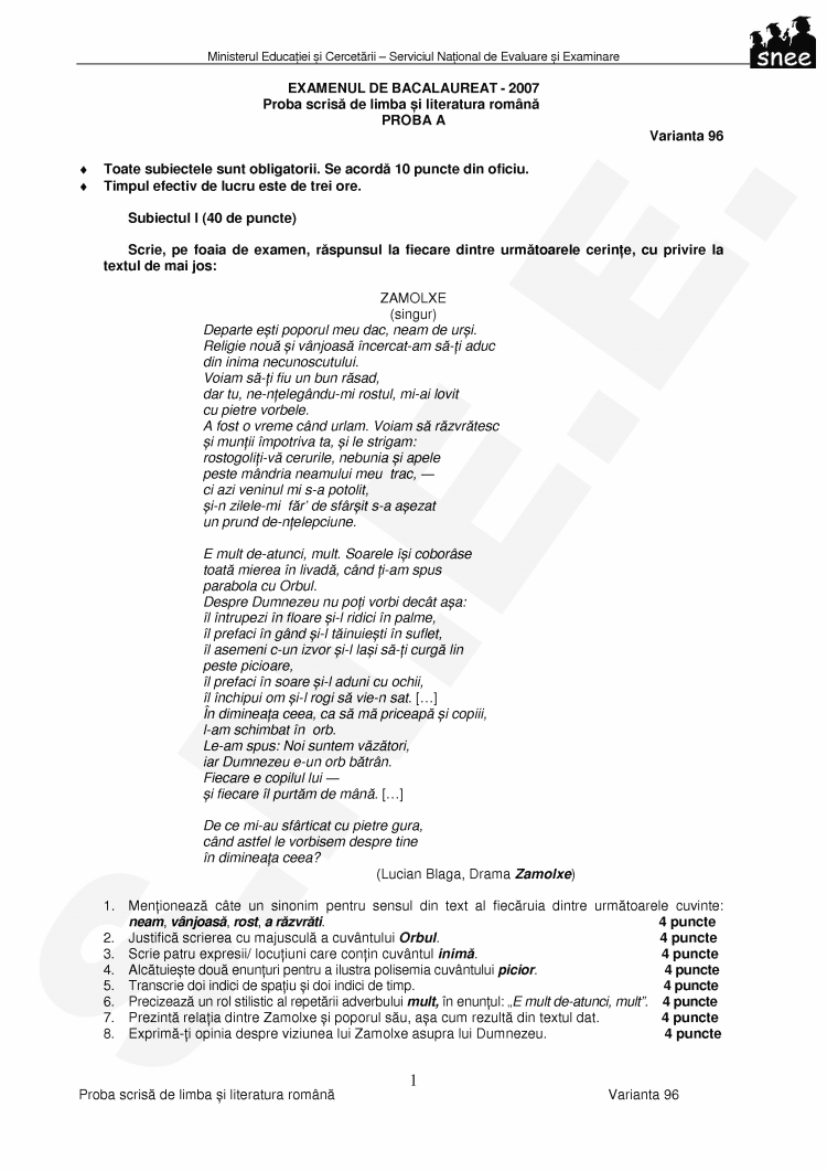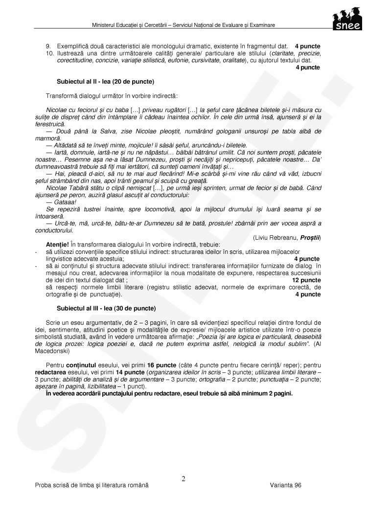 3 puncte; abilitati de analiza si de argumentare - 3 puncte;